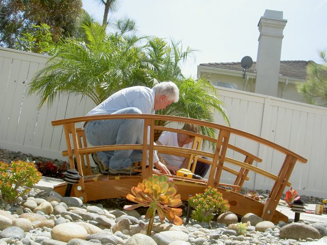 April, 2005 -- An ornamental Redwood bridge designed, built,